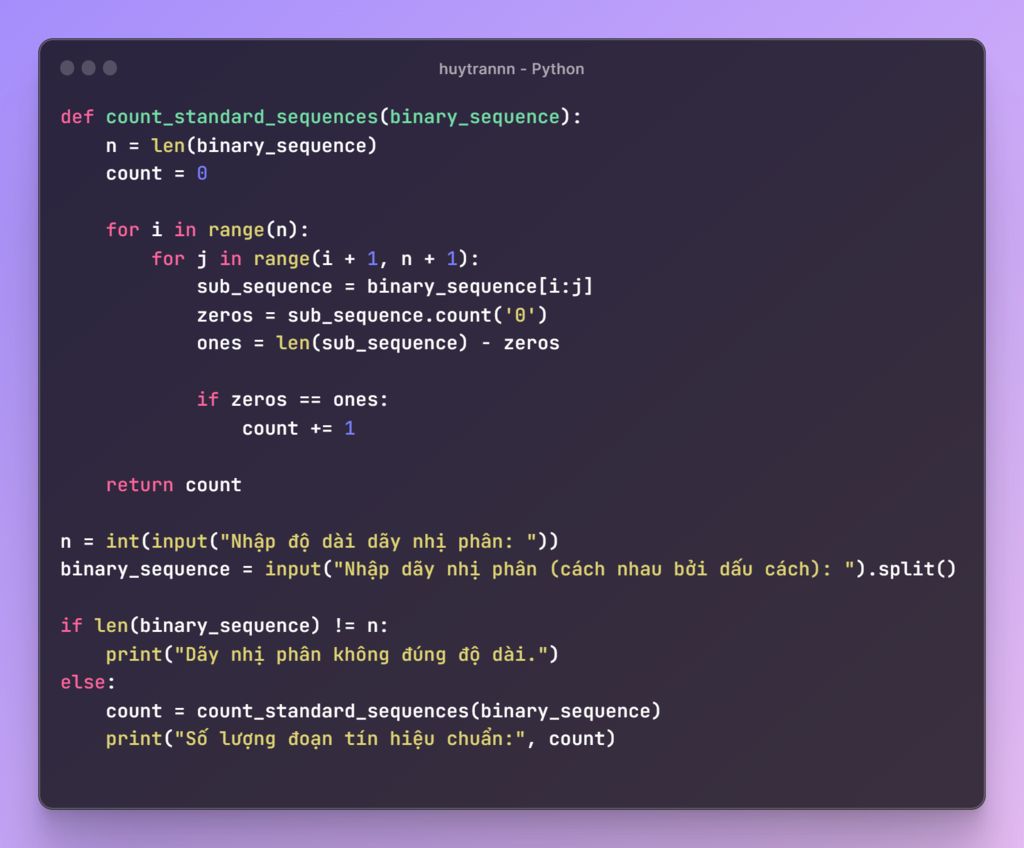# Kiểm tra độ dài dãy nhị phân và đưa ra kết quả là các đoạn tín hiệu chuẩn
