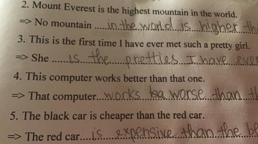 $2. $ No mountain in the world is as high as Mount Everest