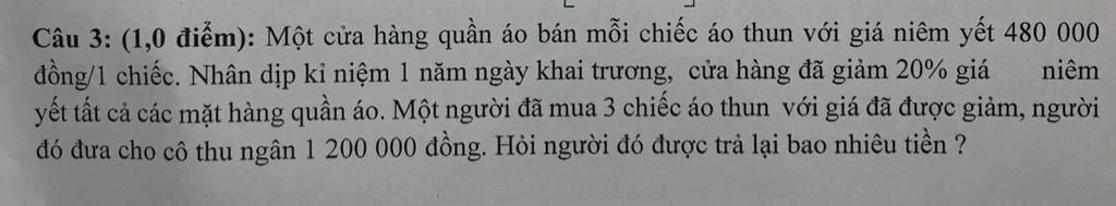 Khi giảm giá 20% thì số tiền còn lại của 1 chiếc áo thun là: