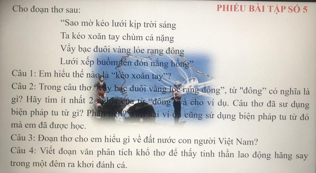 Câu 2: Trong câu thơ “dậy bạc đuôi vàng loẻ rạng đông”, từ "đông” có nghĩa là