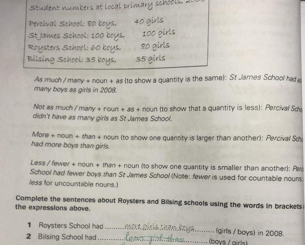 - Trong dữ liệu có đề cập "Bilsing School : 35 boys, 35 girls"