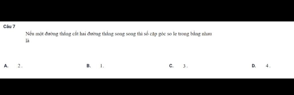 → Nếu một dường thẳng cắt 2 đường thẳng song song thì có 2 cặp góc so le trong bằng nhau.Đó là: