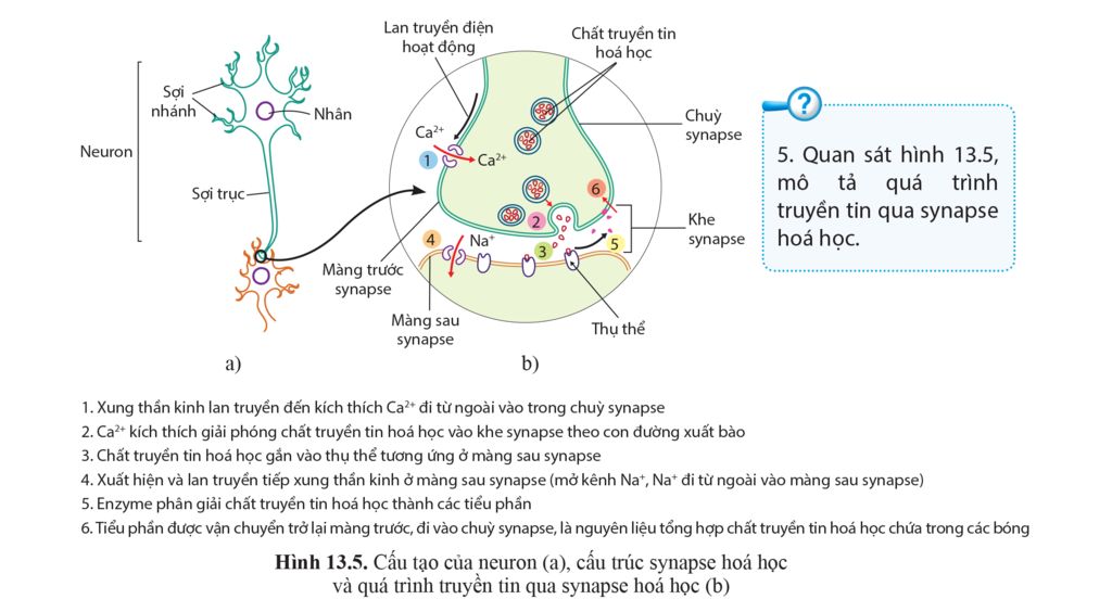 1. Xung thần kinh lan truyền đến kích thích Ca2+ đi từ ngoài vào trong chuỳ synapse