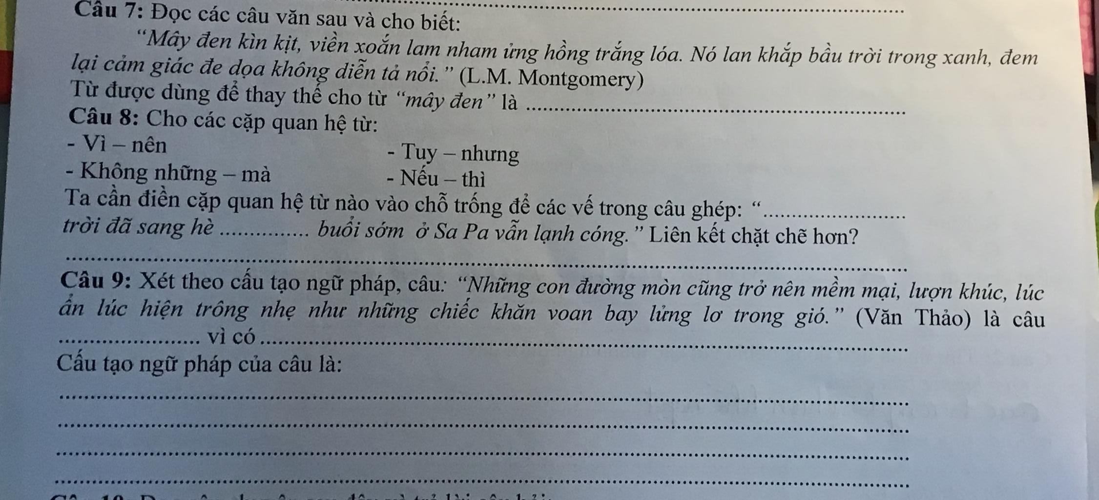 `-` Từ dùng để thay thế cho từ “mây đen” là : Nó