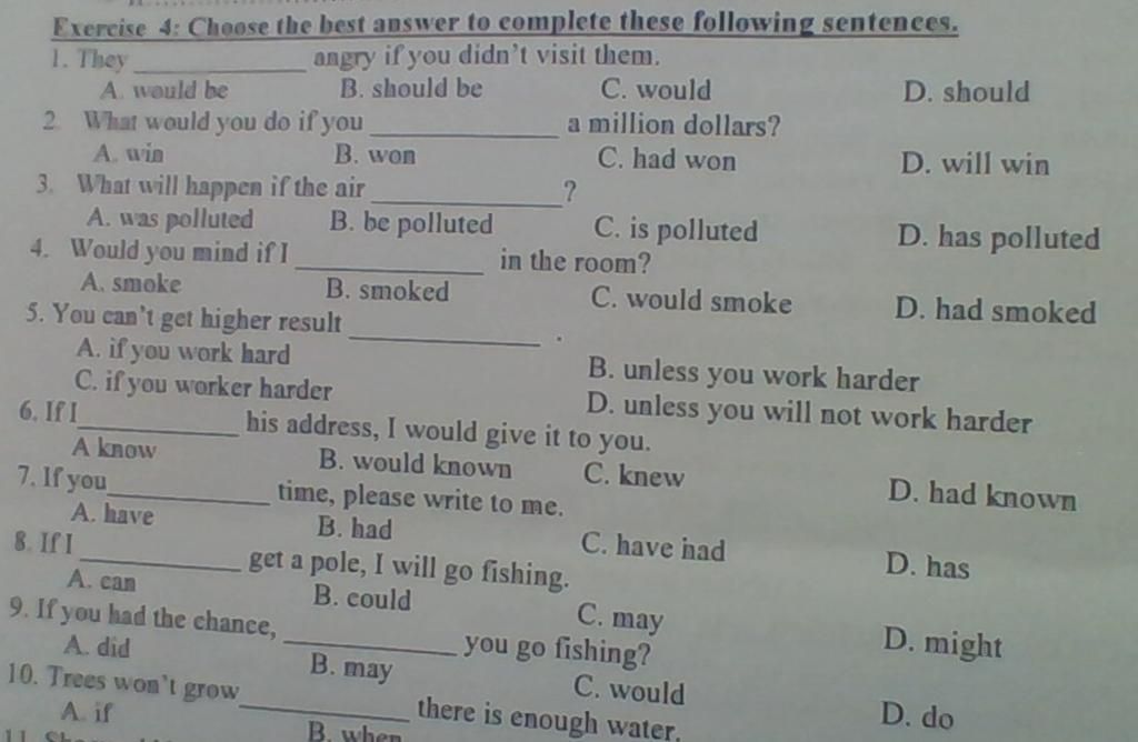 `4,` B (Câu ĐK loại 2 - dấu hiệu : mệnh đề chính có "would")