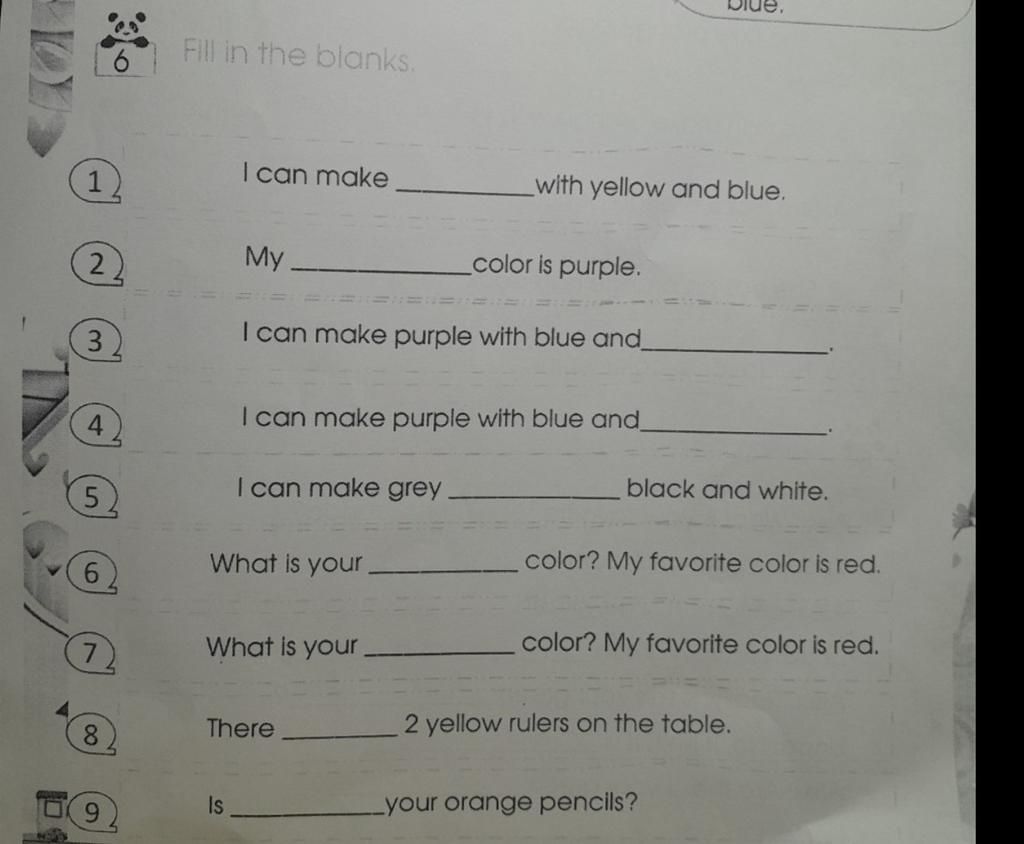 `1.` Green ( do màu vàng `+` màu xanh lam `=` màu xanh lá )