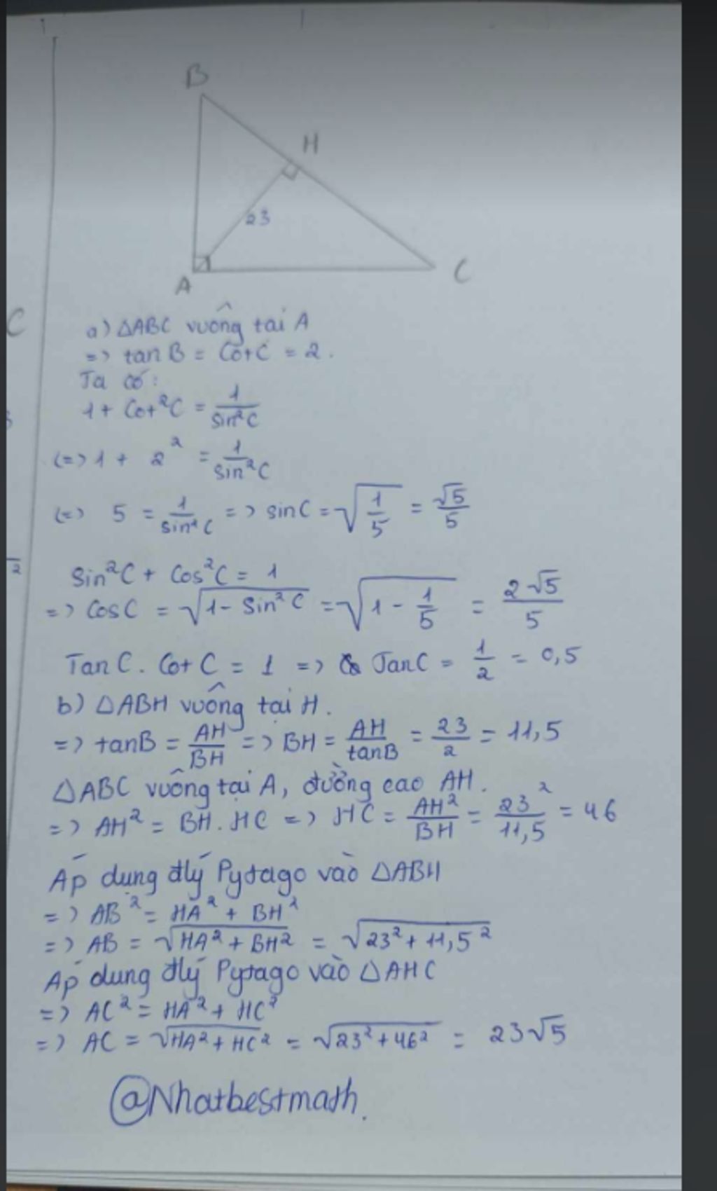 sin C = $\frac{AH}{AC}$ ≈ 0,45 => AC ≈ 23 / 0,45 ≈ 460/9