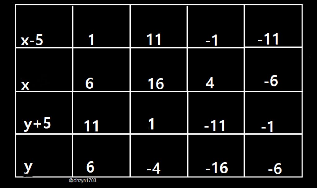 `=>(x-5);(y+5) \in Ư(11)={+-1;+-11}`