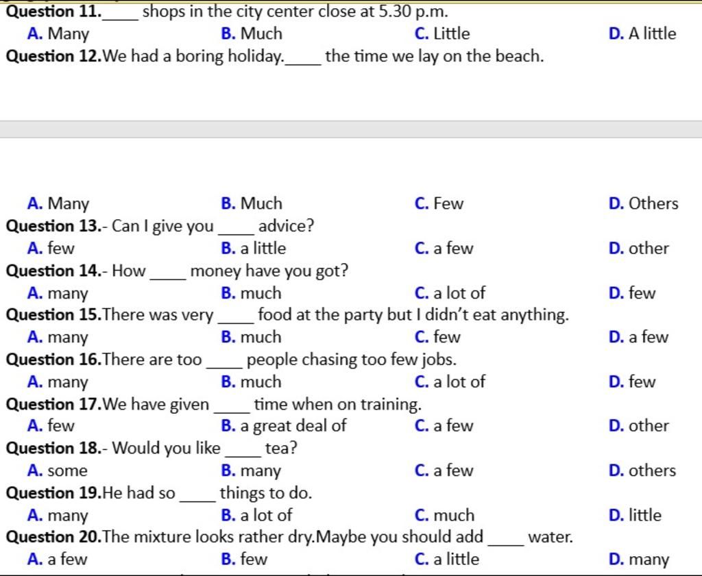 `-` many `+` danh từ đếm được số nhiều. Dùng trong câu `(-)` và `(?)`