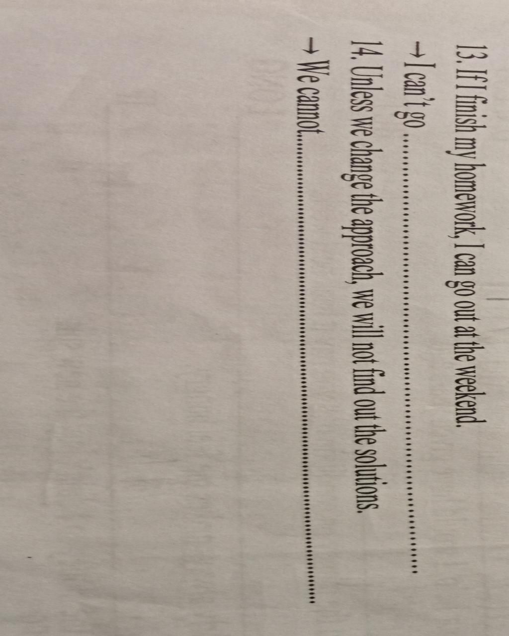 - Nếu tôi hoàn thành xong bài tập về nhà, tôi có thể đi chơi vào cuối tuần = Tôi không thể đi chơi vào cuối tuần nếu tôi chưa hoàn thành bài tập về nahf