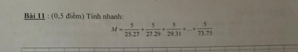 `M=5/(25.27)+5/(27.29)+5/(29.31)+...+5/(73.75)`