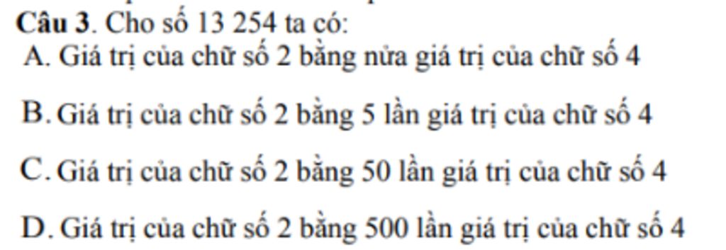 $\to$Giá trị của chữ số $2$ bằng $50$ lần giá trị của chữ số $4$