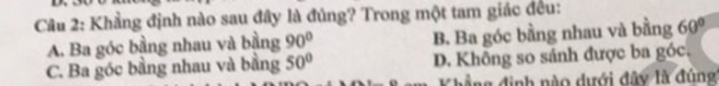 Câu 2: Khẳng định nào sau đây là đúng? Trong một tam giác đều: