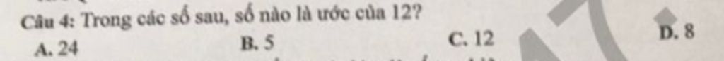 Ước của $12$ là: $\{1; 2; 3; 4; 6; 12\}.$
