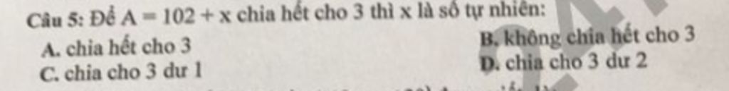 Để `102 + x` chia hết cho `3` tiếp, thì `x` phải là số chia hết cho `3`