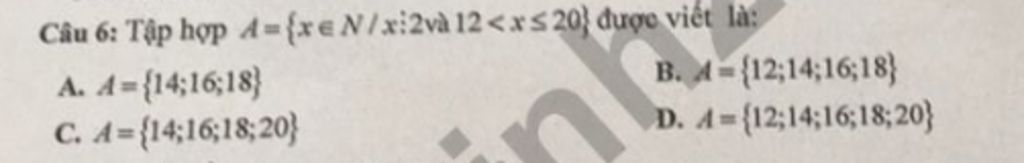 $A$ là tập hợp các số tự nhiên lớn hơn $12$, nhỏ hơn hoặc bằng $20$ và chia hết cho $2$