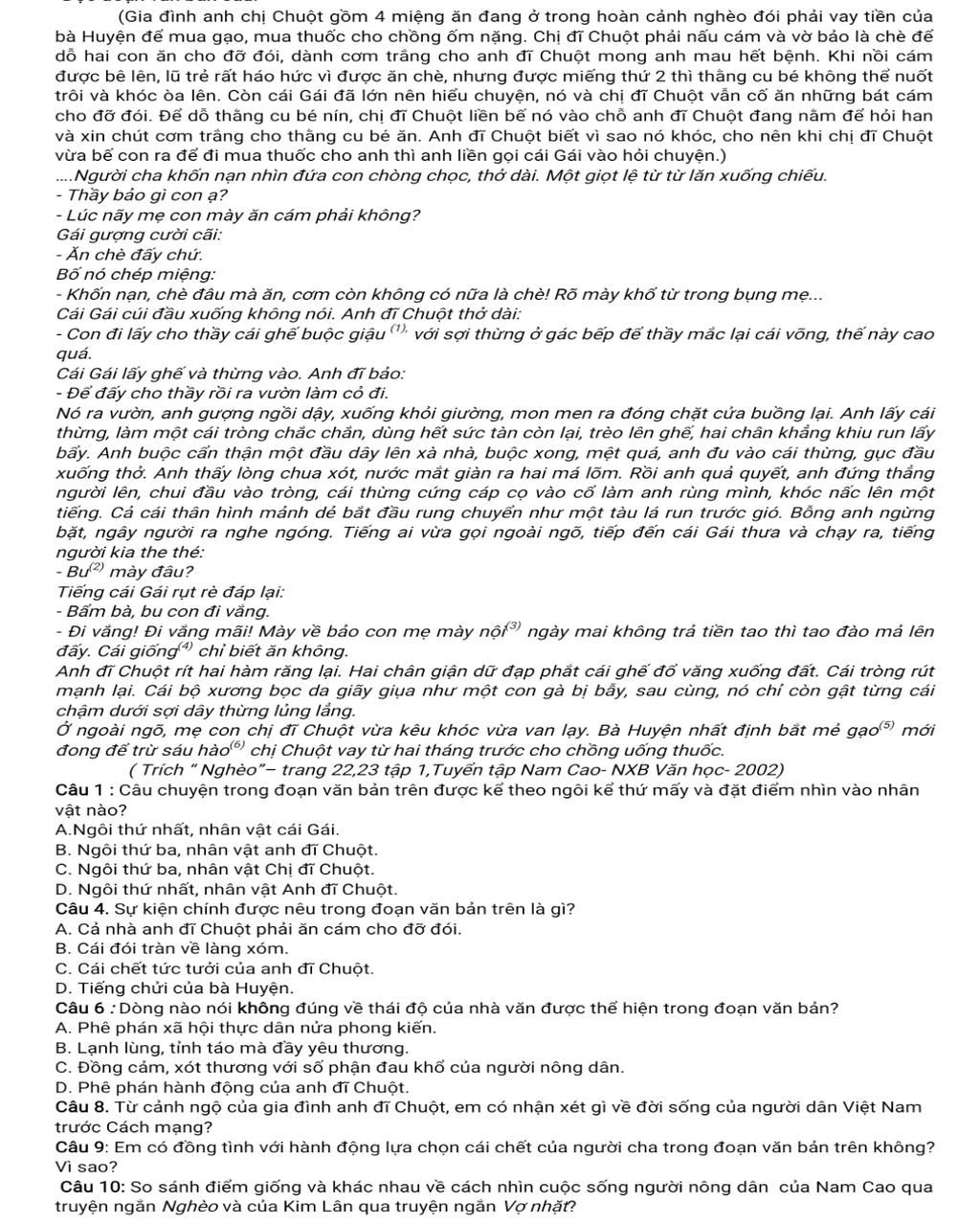 bà Huyện để mua gạo, mua thuốc cho chồng ốm nặng. Chị đĩ Chuột phải nấu cảm và vờ bảo là chè để