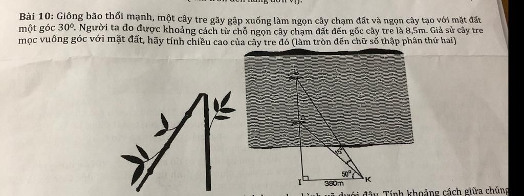 Bài 10: Giông bão thổi mạnh, một cây tre gãy gập xuống làm ngọn cây chạm đất và ngọn cây tạo với mặt đất