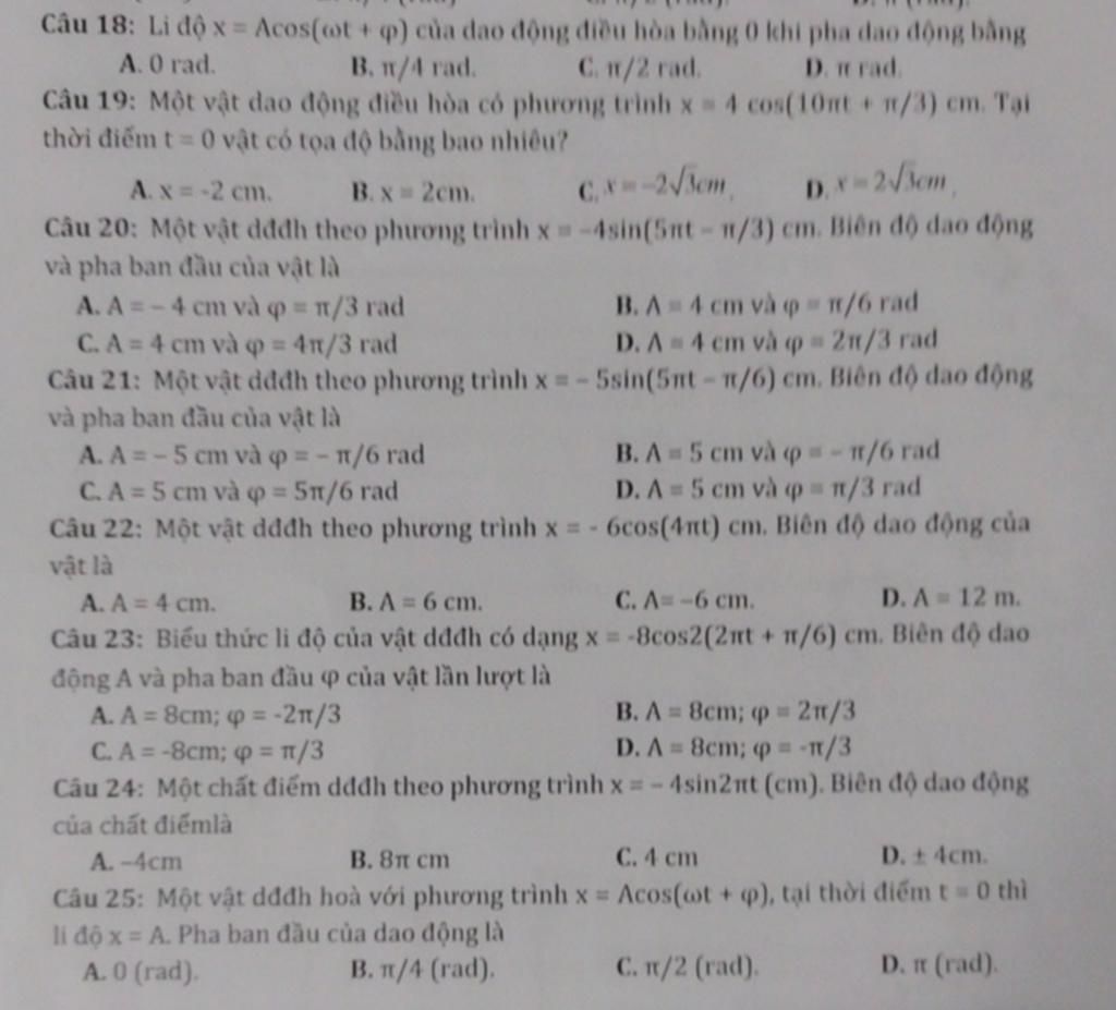 Pha ban đầu là: \(\varphi = 0\left( {rad} \right)\)
