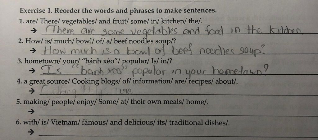 1. are/ There/ vegetables/ and fruit/ some/in/ kitchen/ the/.