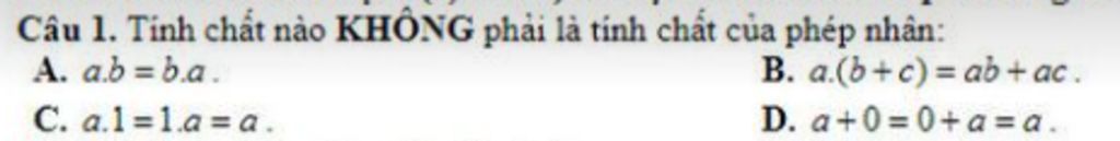 `->` Ta thấy câu `D` sai vì nó là tính chất của phép cộng