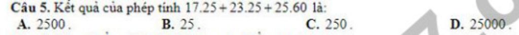 $17.25+23.25+25.60\\ =25(17+23+60)\\ =25.100\\ =2500.$