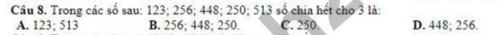 Đáp án D sai vì 448 và 256 đều không chia hết cho 3.