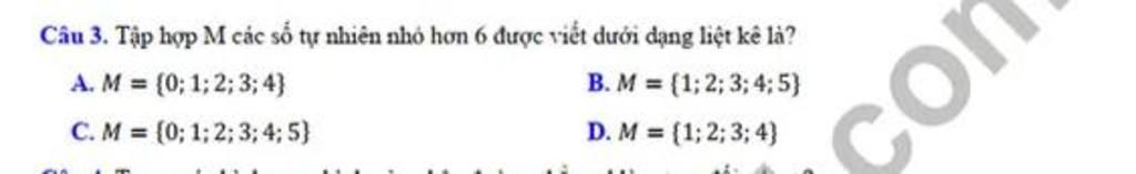 `->` Các số tự nhiên bé hơn `6` là `{0;1;2;3;4;5}`