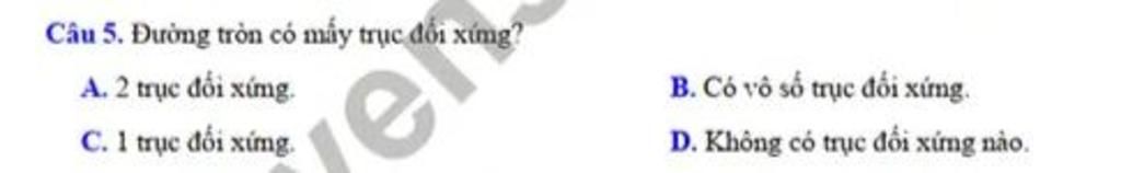 Đường tròn có vô số trục đối xứng là đường thẳng đi qua tâm đường tròn đó