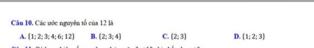 `=>` Ước nguyên tố của `12` là `2` và `3`