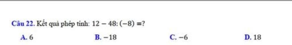 $12-48:(-8)=12-(-6)=12+6=18$