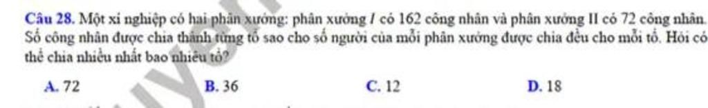 $\to UCLN(162, 72)=2\cdot 3^2=18$