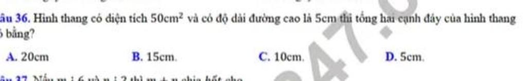 Tổng độ dài hai cạnh đáy của hình thang đó là: