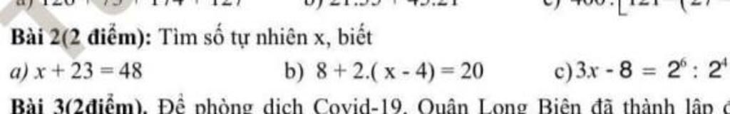 $c) 3x - 8 =2^6:2^4\\ \to 3x - 8 =2^2\\ \to 3x - 8 =4\\ \to 3x =12\\ \to x =4$