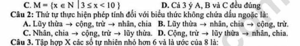 ` *** ` Thứ tự thực hiện phép tính đối với biểu thức không chứa dấu ngoặc là ` : `