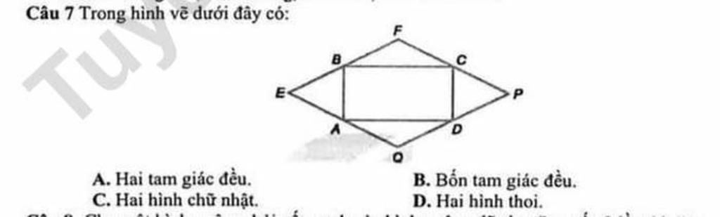 Trong hình vẽ có $2$ tam giác đều $\Delta ABE,\Delta CDP$
