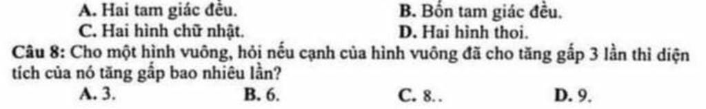 `(\text{S sau khi cạnh tăng gấp 3 lần})/(\text{S ban đầu})=(3^2. a^2)/(a^2)=3^2=9` `(` lần `)`