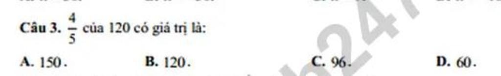 `=>4/5` của `120` có giá trị là: