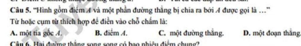 Vì hình tạo bởi điểm `A` và một phần đường thẳng được chia ra bởi điểm `A` được gọi là một thì được gọi là sẽ được gọi là Tia