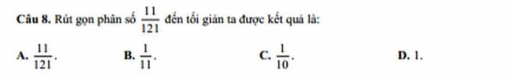 $\dfrac{11}{121}=\dfrac{11:11}{121:11}=\dfrac1{11}$