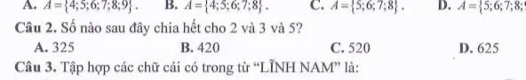 `star` Xét `B.420->4+2+0=6 vdots 3->` Nhận