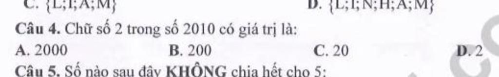 `=>` Chữ số `2` trong số `2010` có giá trị là `2000`