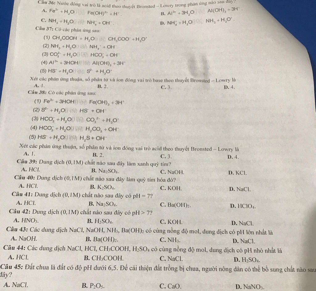 `=>`Chọn $KOH$ là $base$ duy nhất trong đáp án.