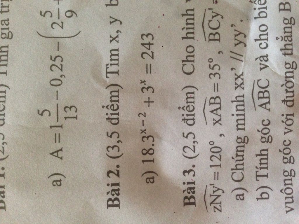 Giải thích các bước giải: \(\begin{align} {{18.3}^{x-2}}+{{3}^{x}}=243 \\ \Leftrightarrow 18.\frac{1}{{{3}^{2}}}{{.3}^{x}}+{{3}^{x}}=243 \\ \Leftrightarrow {{2.3}^{x}}+{{3}^{x}}=243 \\ \Leftrightarrow {{3}^{x}}\left( 2+1 \right)={{3}^{5}} \\ \Leftrightarrow {{3}^{x+1}}={{3}^{5}} \\ \Rightarrow x+1=5 \\ \Rightarrow x=4 \\ \end{align}\)