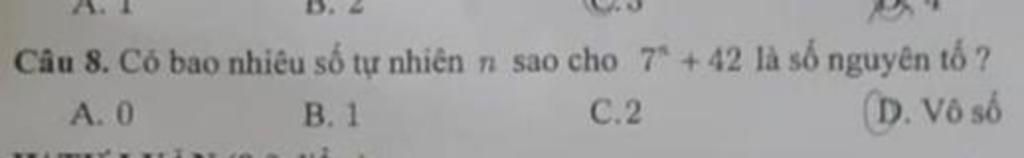 $\to 7^n+42=7^0+42=43$ là số nguyên tố