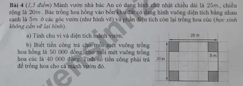 Số tiền công phải trả cho `2` vườn hoa là `:`
