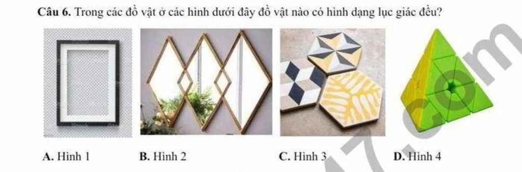 Câu 6. Trong các đồ vật ở các hình dưới đây đồ vật nào có hình dạng lục giác đều?