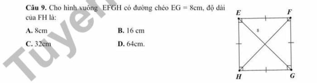 Vì `EFGH` là hình vuông `=>` `EG=FH=8` `cm`