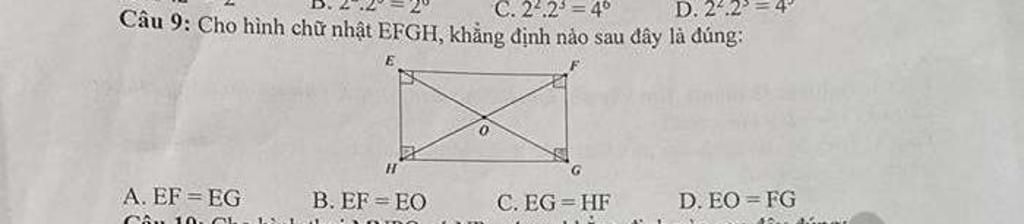 `C.EG=HF->` Đúng vì `2` đường chéo bằng nhau