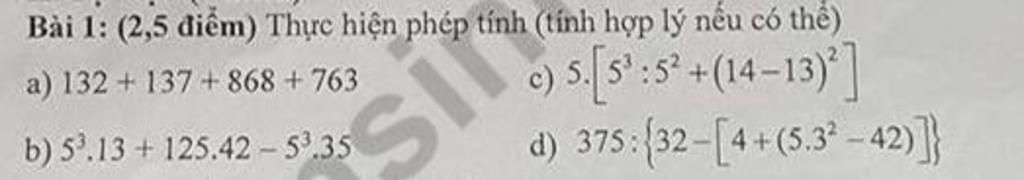 c) \(5^{3}.13+125.42-5^{3}.35\)
